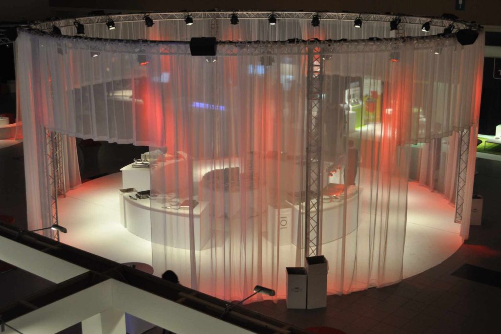 A.S. Technology past deze techniek veelvuldig toe bij trussconstructies als afscheidingswanden of als decoratieve gordijnen. Plafonds worden uitgevoerd in strak gespannen stoffen, die naar keuze ondoorschijnend of lichtdoorlatend zijn. In combinatie met aangepaste verlichting en eventueel beeldprojectie biedt dit vele mogelijkheden. Plaatsing van grote blackboxen of whiteboxen met verduisteringsgordijnen en textielplafonds (en indien gewenst geluidwerende panelen) is eveneens één van onze doekenspecialiteiten.